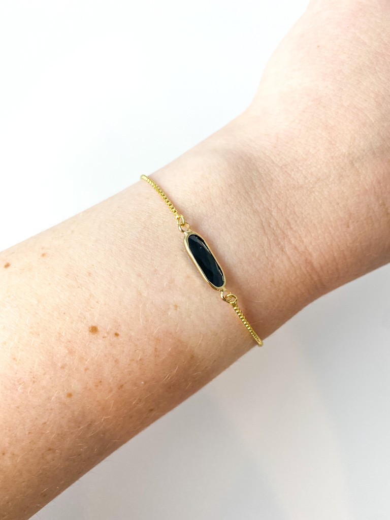 This gold-plated bracelet lets you sail away in style with its adjustable fit and charming glass charm. Enjoy ultimate comfort while looking effortlessly chic.