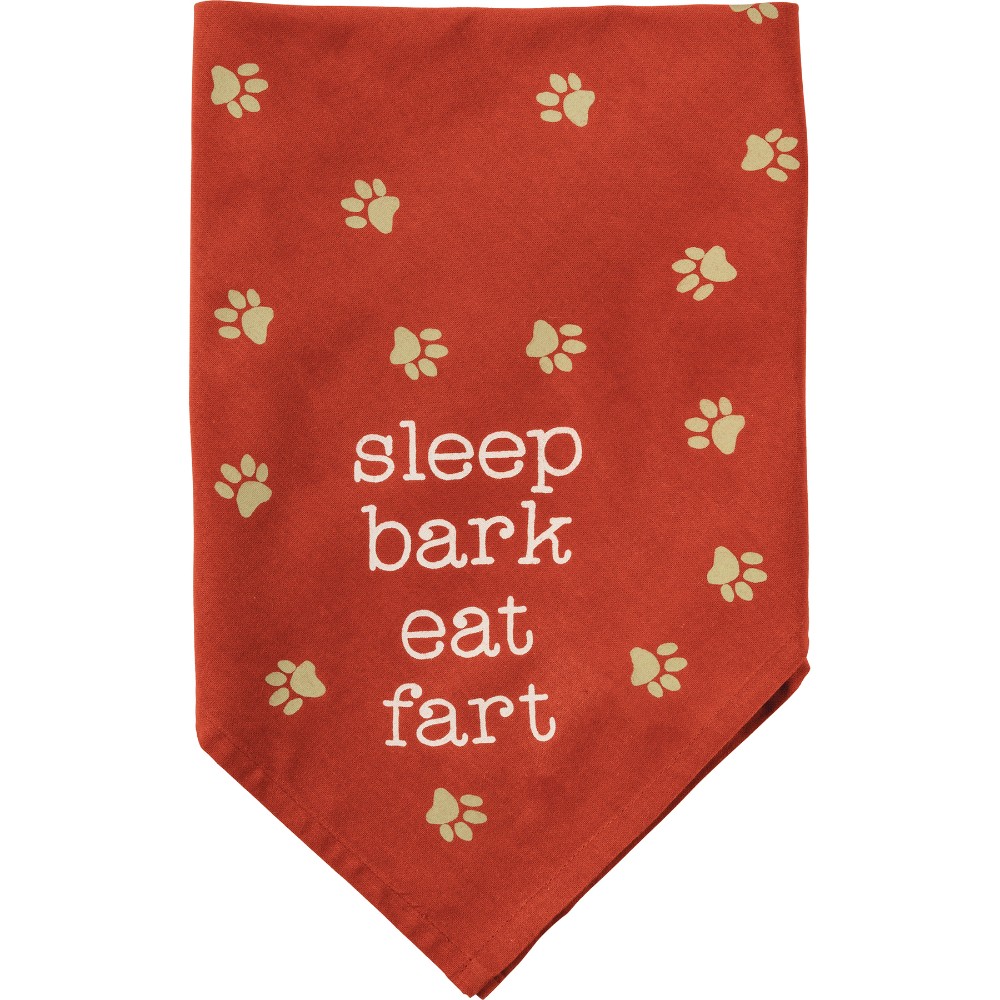 A large reversible pet bandana featuring "I Chase Taco Trucks" and "Sleep Bark Eat Fart" sentiments on opposite corners with all-over print design.
